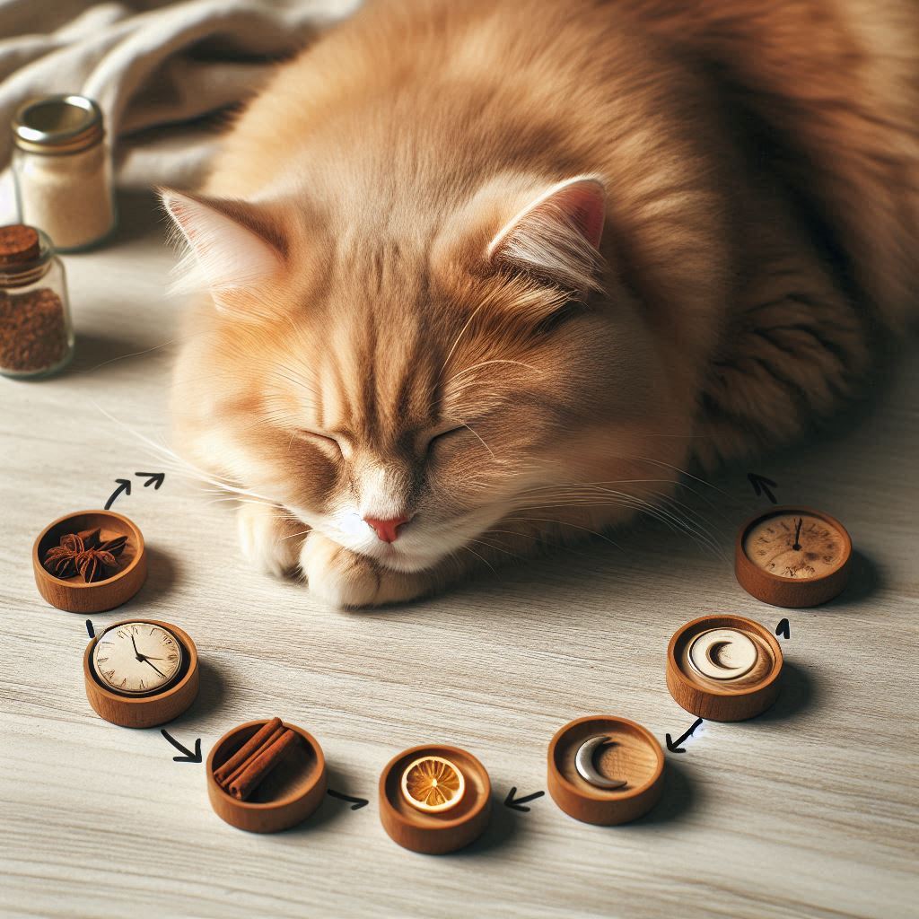 고양이의 수면 주기는 인간과는 다릅니다. 고양이는 일반적으로 일주기 리듬(circadian rhythm)에 따라 활동과 수면을 조절합니다. 고양이는 주로 새벽과 저녁에 활동적이며, 낮과 밤에 짧은 수면을 반복합니다. 이들은 다중 짧은 수면 주기를 가지며, 이를 통해 에너지를 회복하고, 사냥 본능을 충족시킵니다.